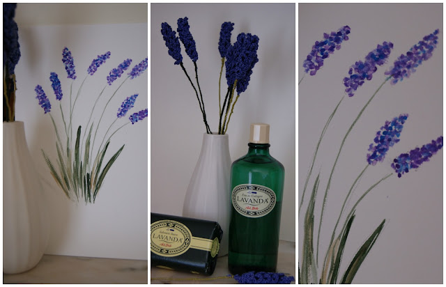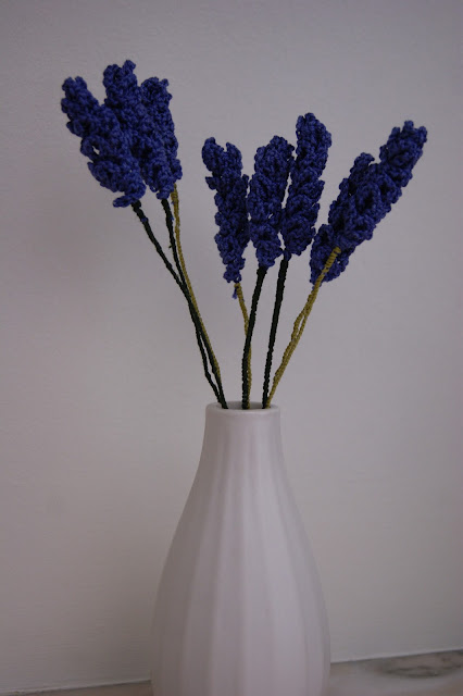 Este ano a alfazema foi fraca para "colheita, por isso resolvi recreá-la de outras formas, em crochet, inspirando-me mais uma vez no blog da Luli. A outra foi pegar nas minhas aguarelas, "tirar-lhes as teias de aranha" e pincelar alfazemas.