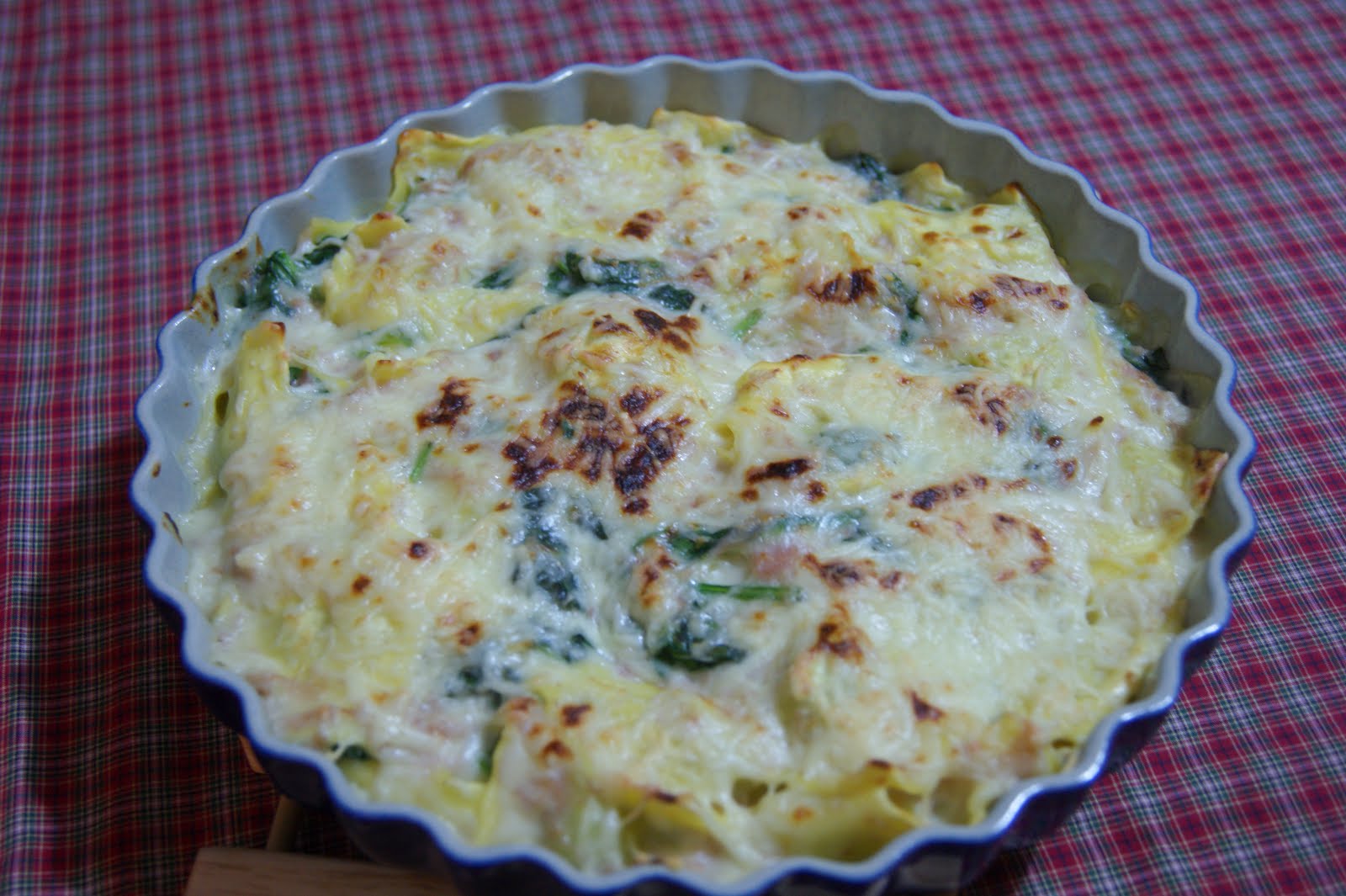 Tortelini Gratinados com molho de Espinafres e Fiambre